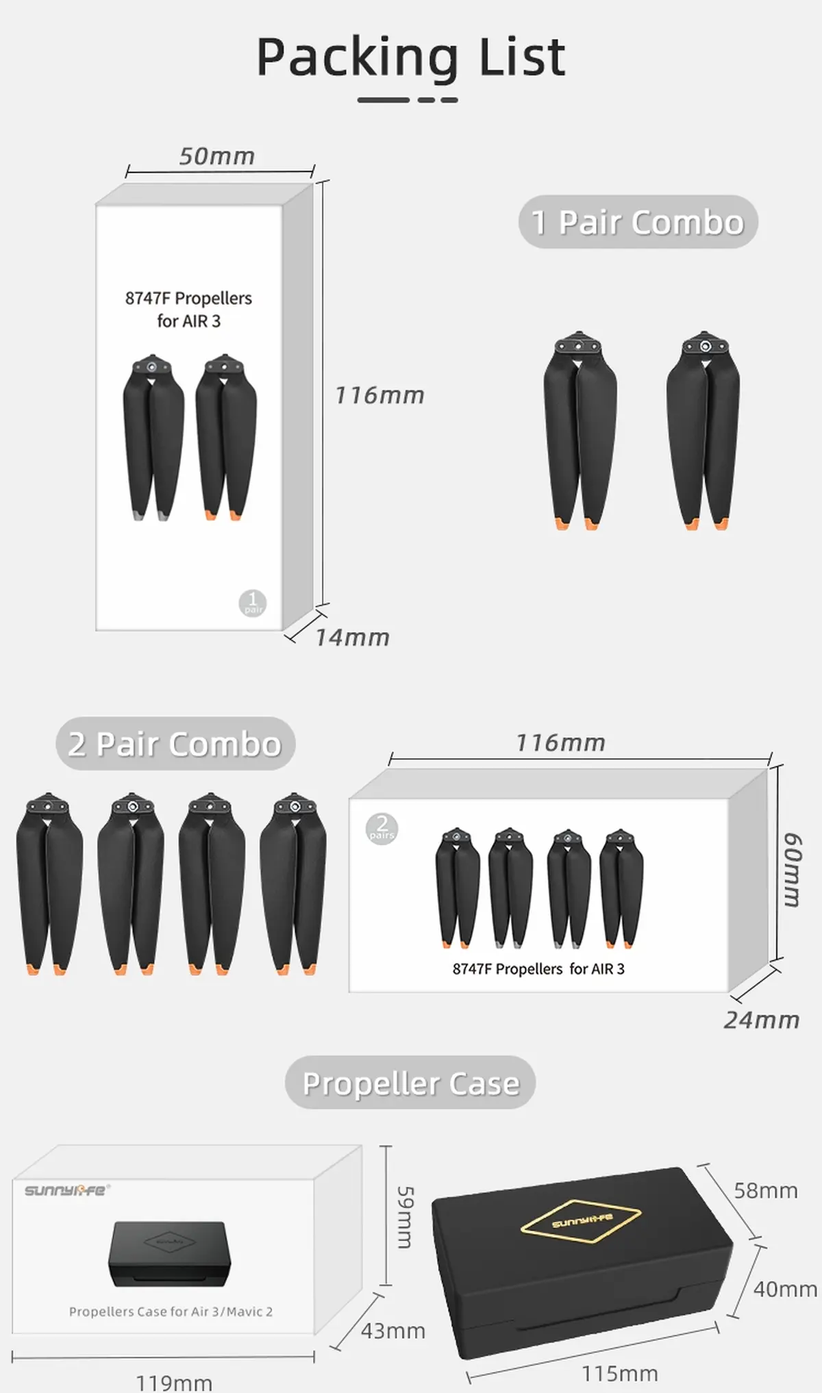 - Inhalt : 1 Paar (2 Stück) Drohnenpropeller für die Kameradrohne DJI Air 3