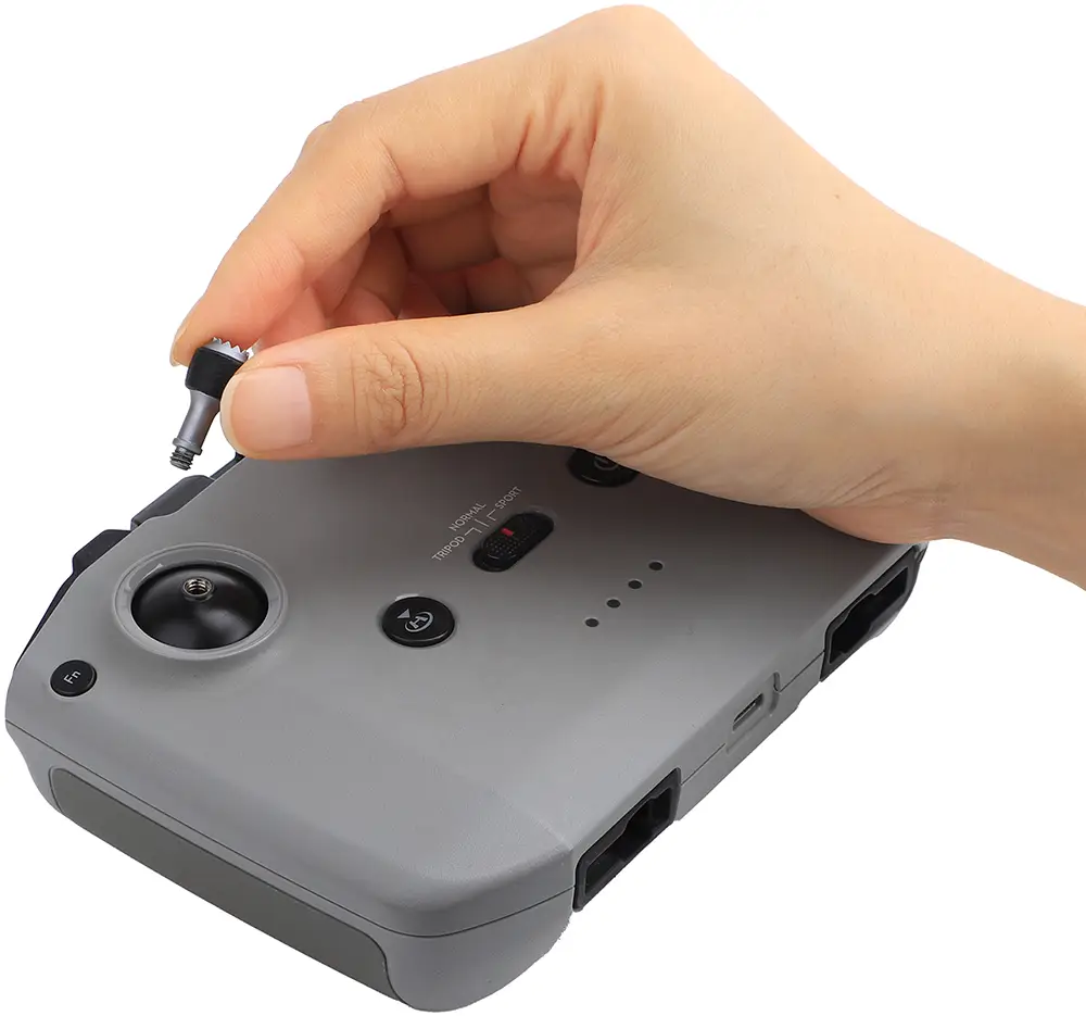 Die Montage des Controllers ist sehr einfach. Alles, was Sie tun müssen, ist, es an Ihren DJI-Controller zu kleben und dann die Sticks festzuschrauben. Wenn Sie ihre Position ändern oder den Controller entfernen möchten, erwärmen Sie einfach das Montageband mit etwas wie einem Fön und der Controller löst sich von selbst.