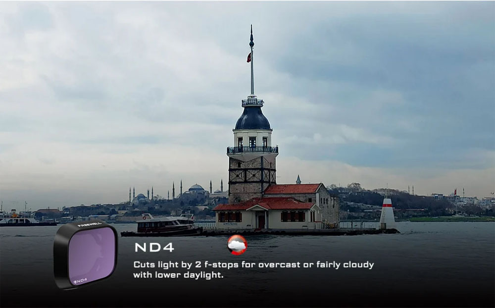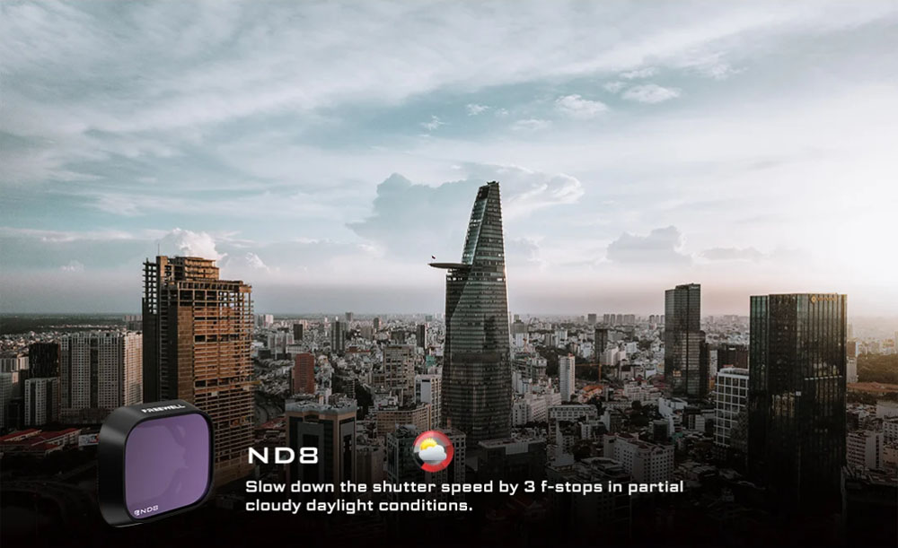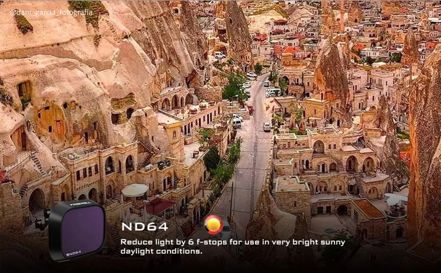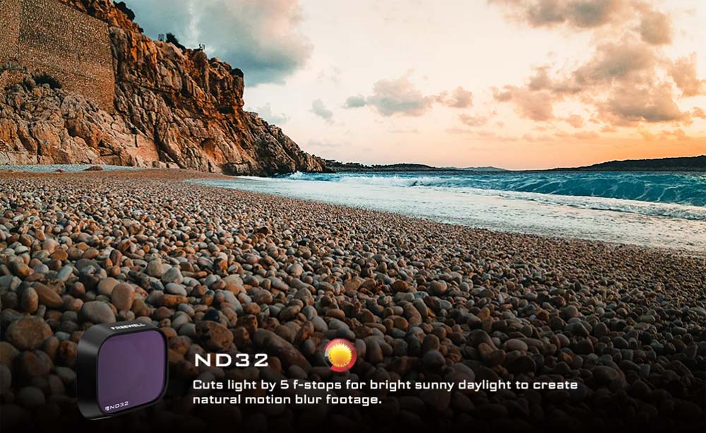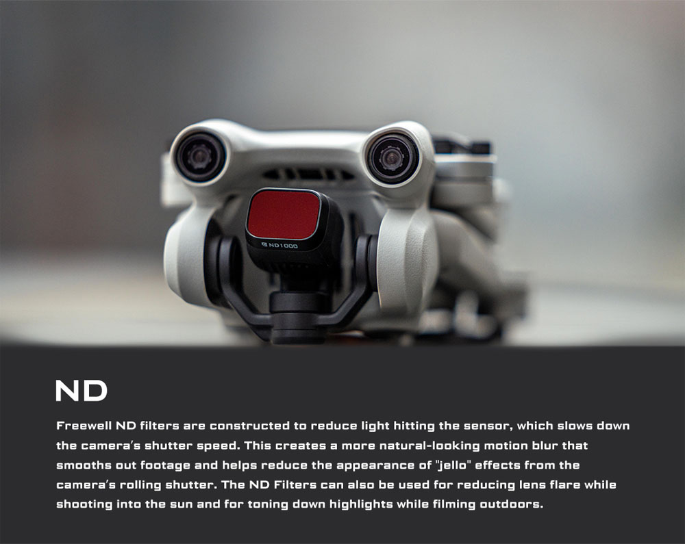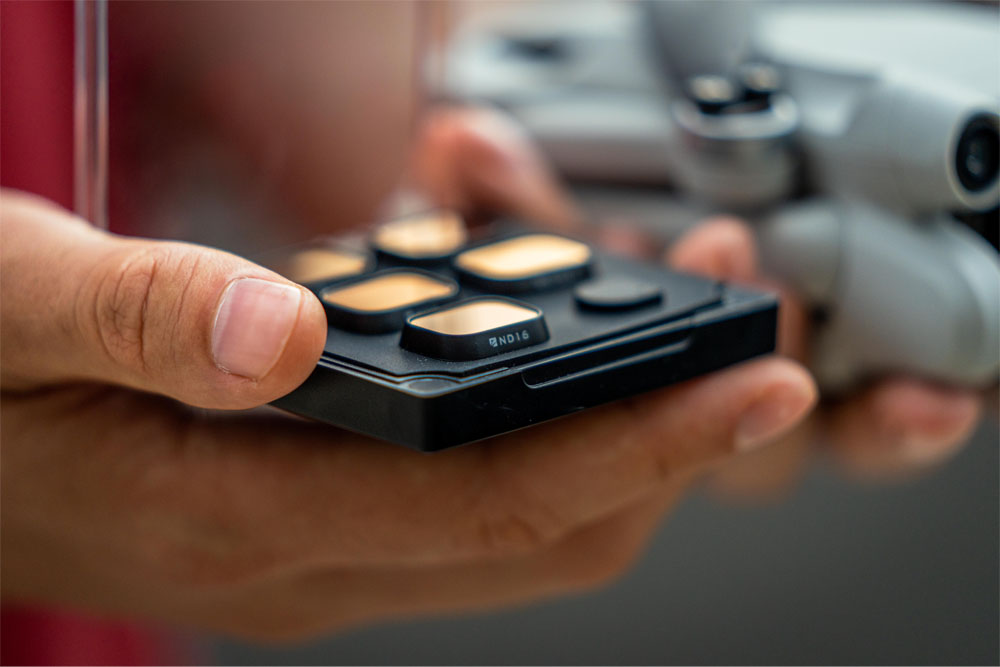 Drohnenkamerafilter mit neutraler Dichte (ND) und Polarisation (PL) sollen die Lichtmenge, die in die Kamera eintritt, reduzieren und / oder filtern. Bei richtiger Anwendung erzeugen ND/PL-Filter sattere Farben und einen größeren Kontrast (z. B. Wolken vor einem klaren Himmel). Videos werden durch eine optimale Verschlusszeit in Kombination mit der Aufnahmegeschwindigkeit (Bilder pro Sekunde) flüssiger und filmischer. Objektivfilter schützen auch Ihr Kameraobjektiv vor Kratzern und Staub.