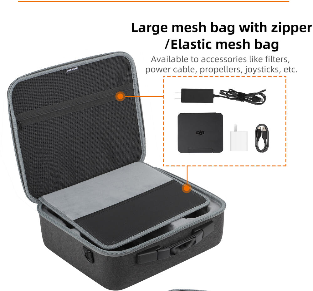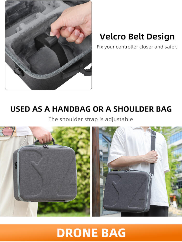 - Platz für alles : Die Tasche bietet nicht nur Platz für Ihre Drohne, sondern auch für all Ihr unverzichtbares Zubehör, wie zusätzliche Akkus, die Fernbedienung und Ladegeräte.