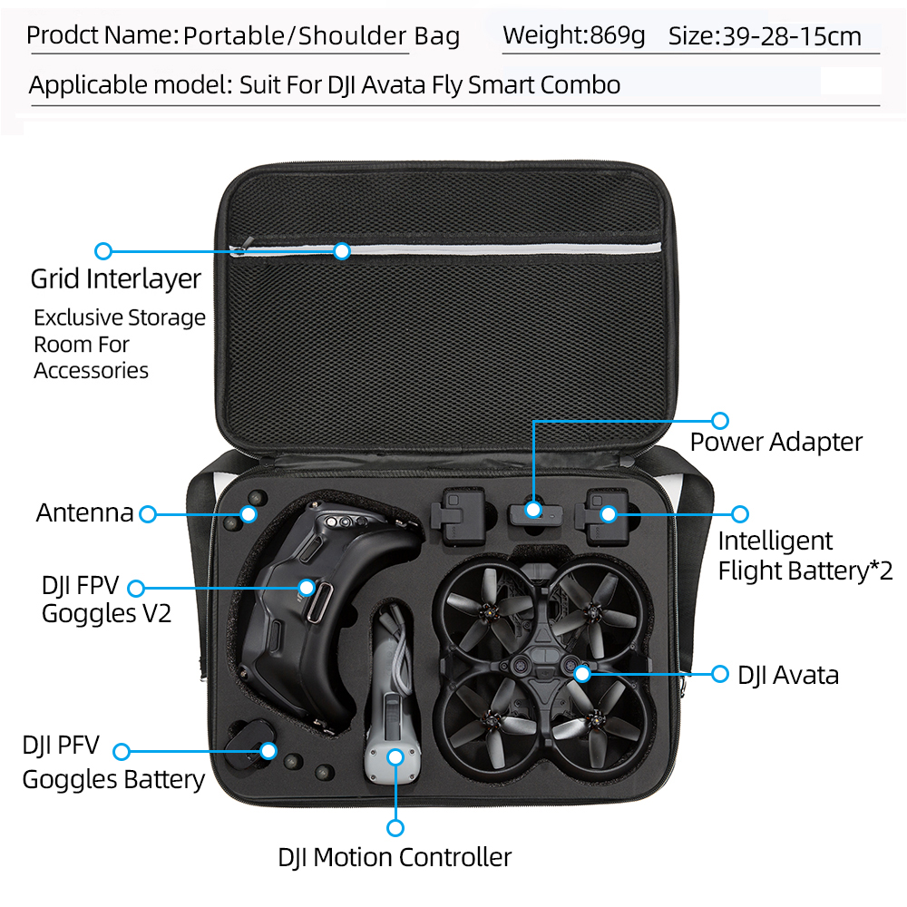 - Robuste Umhängetasche mit Tragegriff für DJI Avata FPV Renndrohne